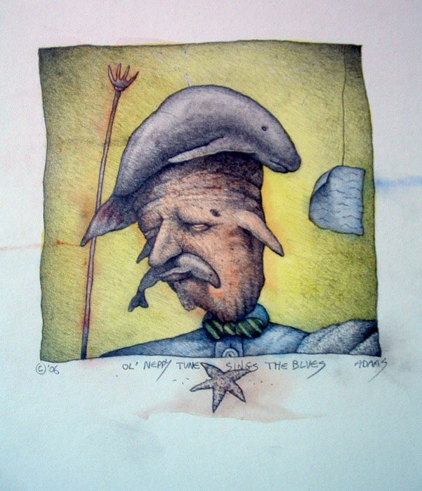 "Ol’ Neppy Tune sings the blues” 8 x 8 14 x 13 framed